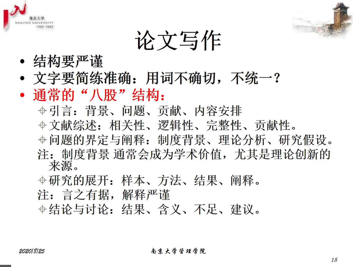 最后,王教授就学术论文的结构进行了分析,尤其实证论文的规范结构的五个重要部分,包括着引言、文献综述、问题的界定和阐释、研究的展开等等,尤其对于年轻老师拟在国际期刊上发表论文,一定需要在制度背景上进行阐明。