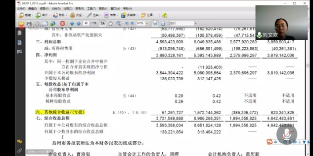 接下来,老师就“会计信息报告形式能影响决策吗”一主题列举了华能国际电力股份有限公司利润表的其他综合收益列示内容变化和其他综合收益列示形式变化的列子,可以看出从2010年到2019年,其年度报告的形式一直在变化。