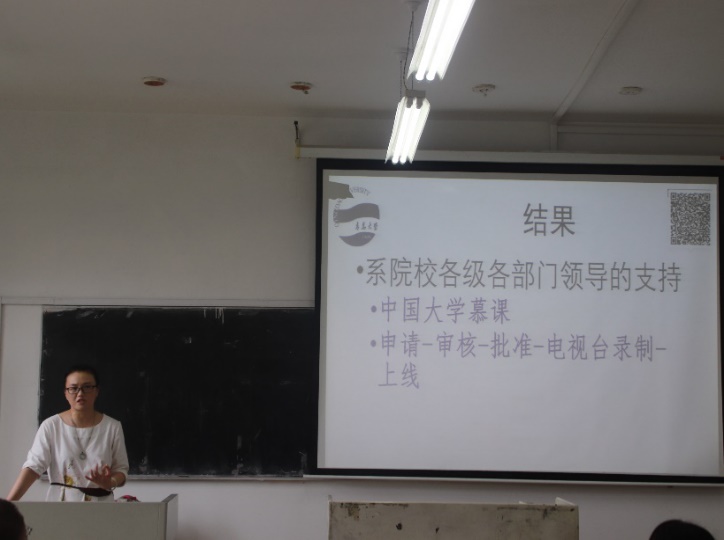 刘锦老师讲解了其在系院校各级各部门领导的支持下,通过申请-审核-批准-电视台录制-上线一系列流程,录制了中国大学慕课的教学视频的过程。不久后,其教学视频被学习强国收录。每年都会有三千多的同学学习,并且取得了不错的评价。