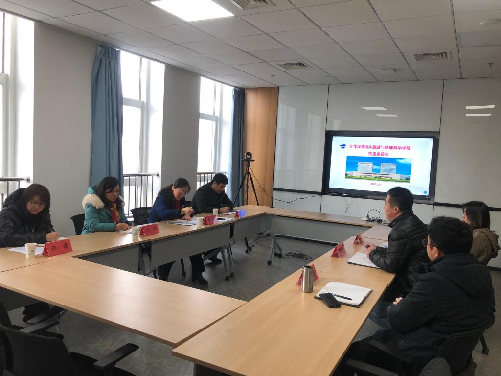 2022年2月21日上午,学校合作发展处张燕处长一行4人到九游官网 指导服务地方、校友工作,九游官网 肖建红院长、于苗副书记、赵玉宗院长助理参加。双方围绕文旅学科深化与地方政府、企业、社会团体合作,协调推进服务青岛合作项目等内容进行了广泛交流。