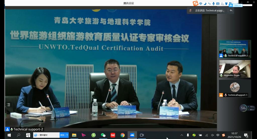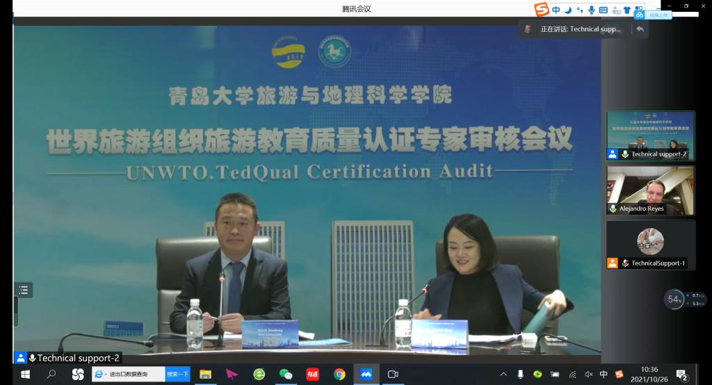 认证审核专家Dr.Reyes总结了6天与认证工作小组的报告与支撑材料论证,云游览校史馆、学生事务大厅、“非遗在青大”文化空间、青大印象休闲茶餐厅、旅游目的地管理实验室等办学设施,线上访谈学校职能部门、教师、学生、校友、公共部门和私营部门代表等审核情况。他认为,结合自评报告、支撑材料论证以及访谈情况,我校旅游管理专业和酒店管理专业的认证准备工作扎实、办学目标明确、办学特色鲜明、办学条件与设施优越、社会声誉和认可度较高,同时也指出了两个专业的不足,并提出了改进的建议。他表示,根据认证流程,接下来将尽快撰写形成一份审核报告提交联合国世界旅游组织旅游教育质量认证委员会审议,最终的认证结果大约在四至六个月后由认证委员会作出。