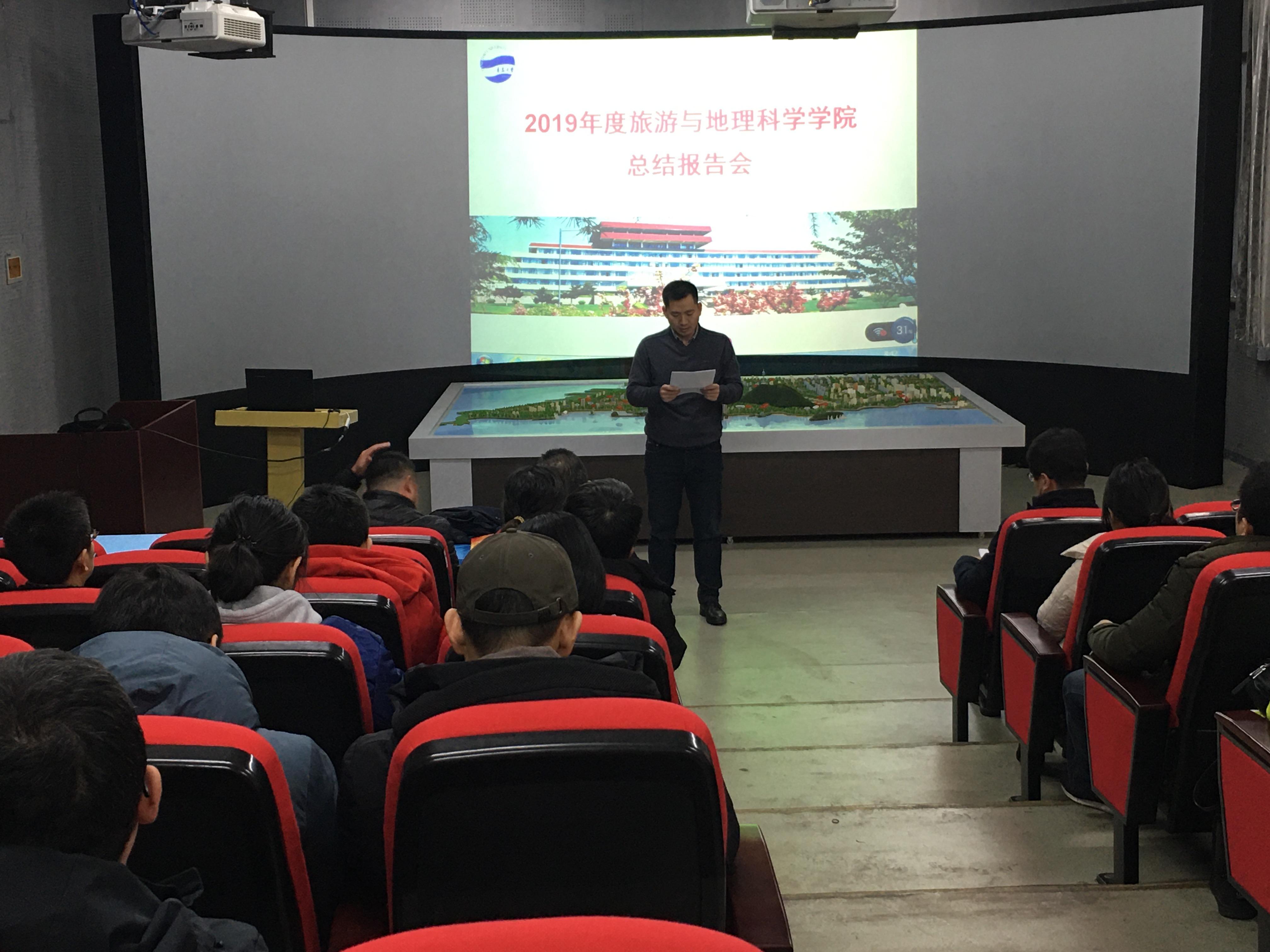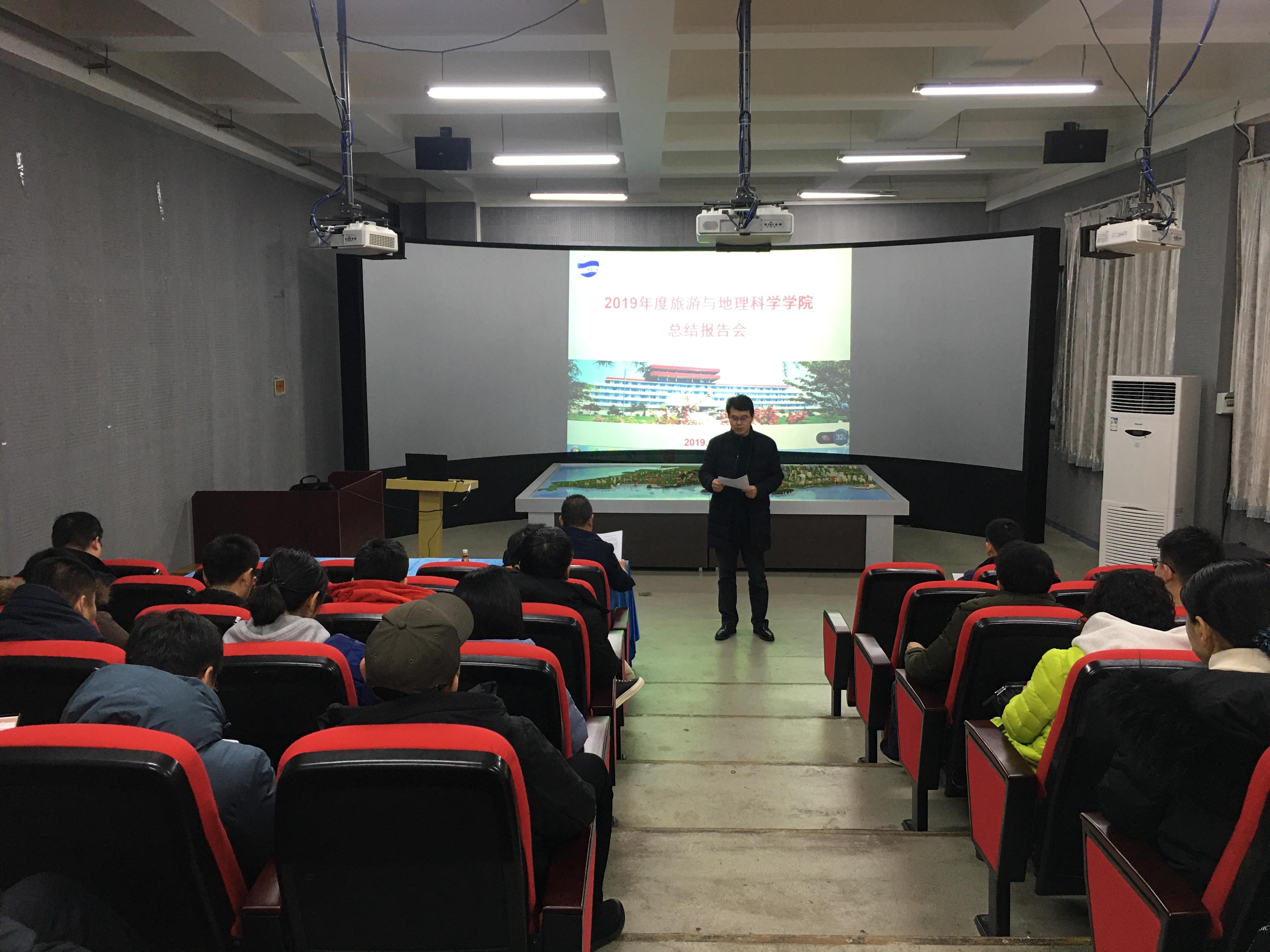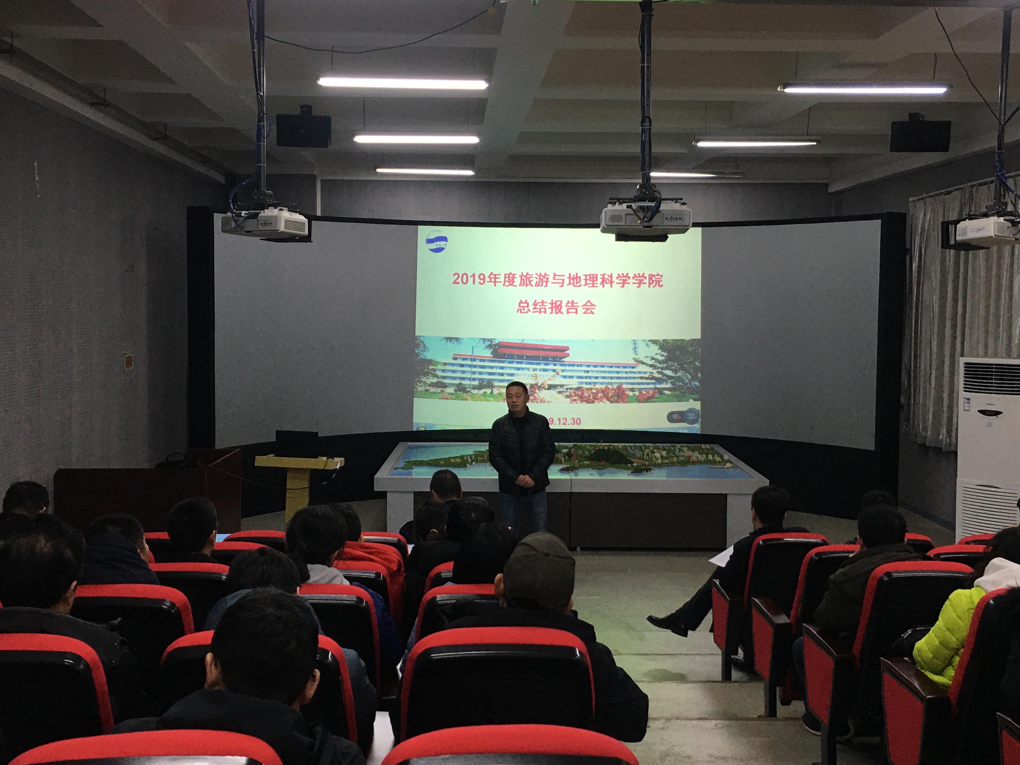 在数字旅游实验室召开2019年度总结报告会,全体教师参加了会议。