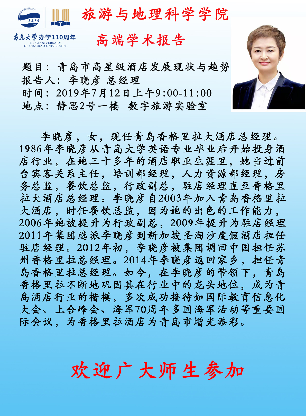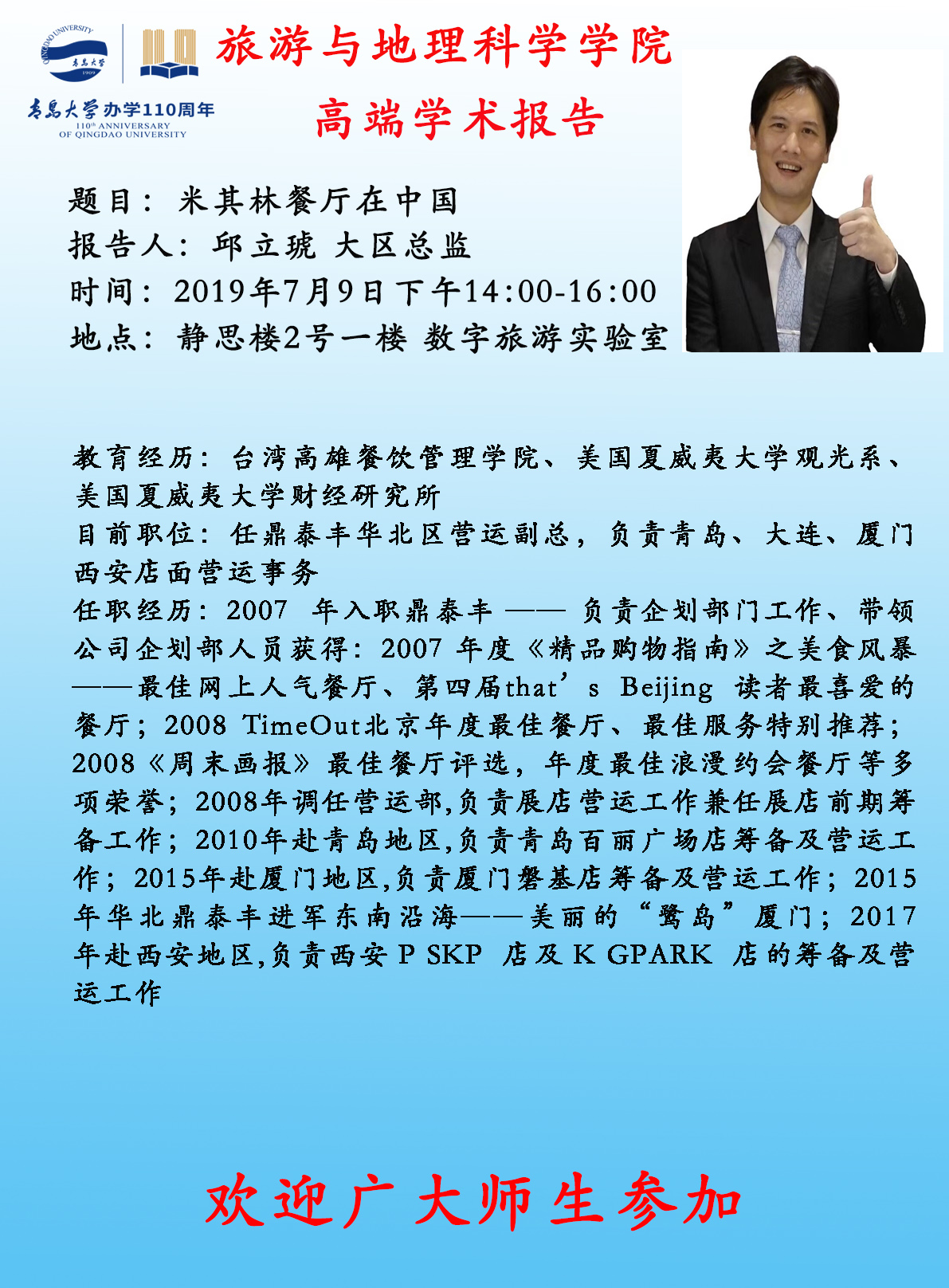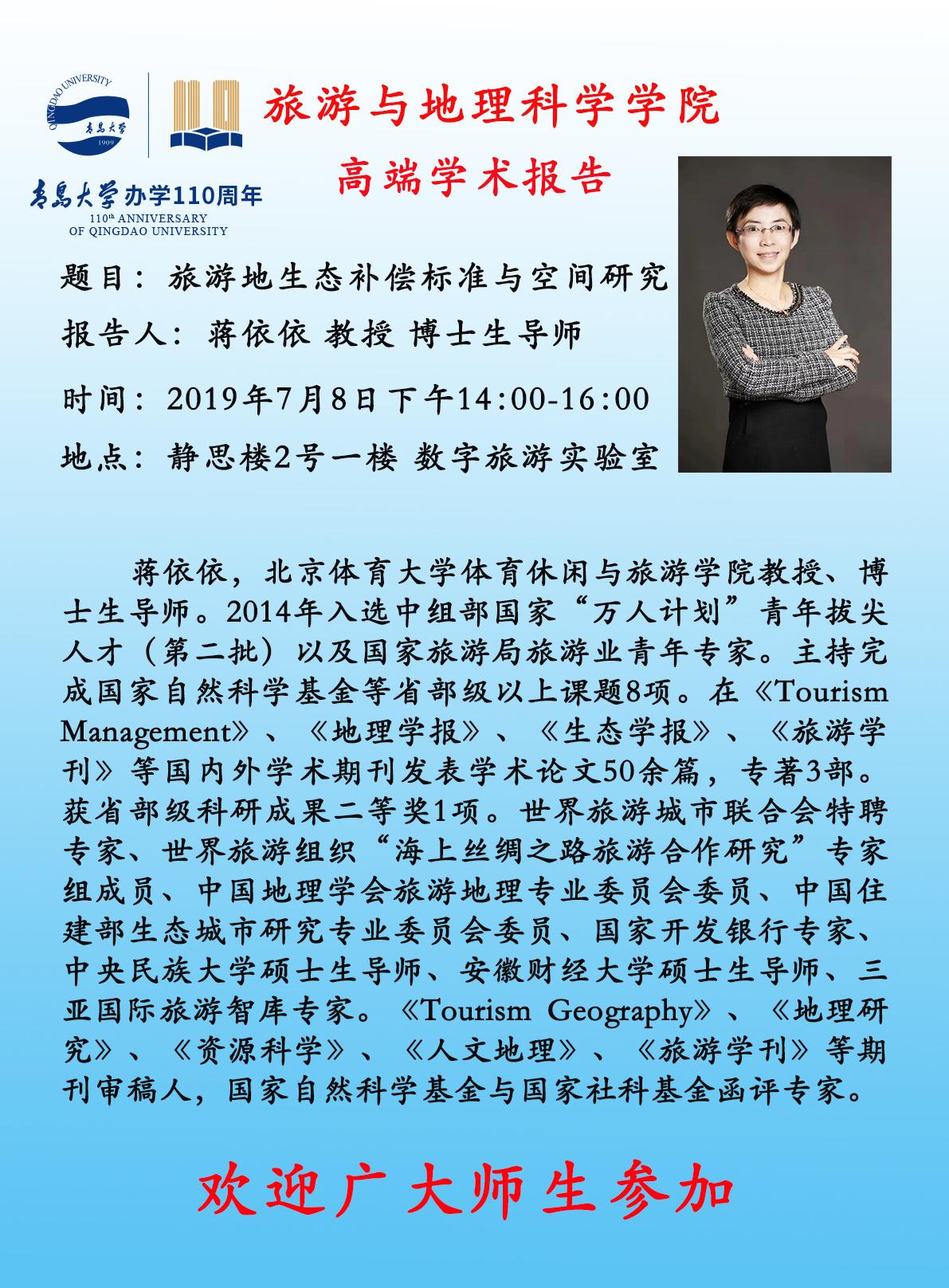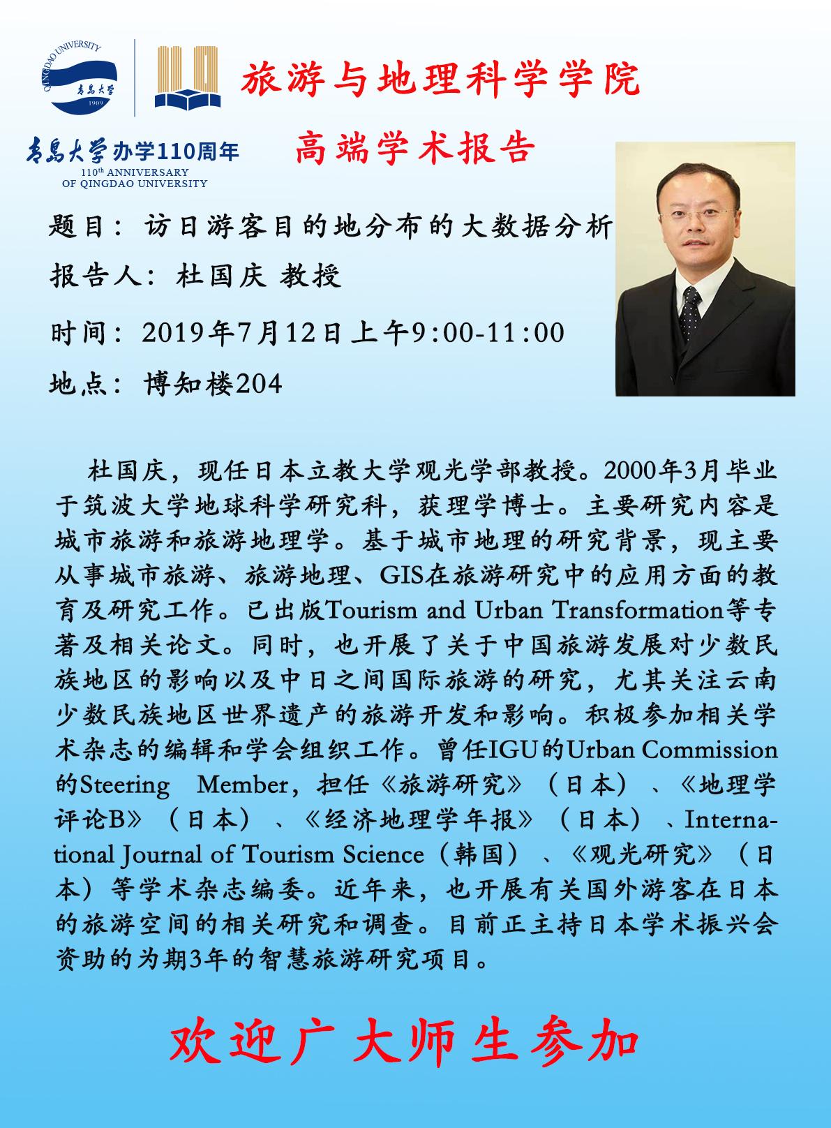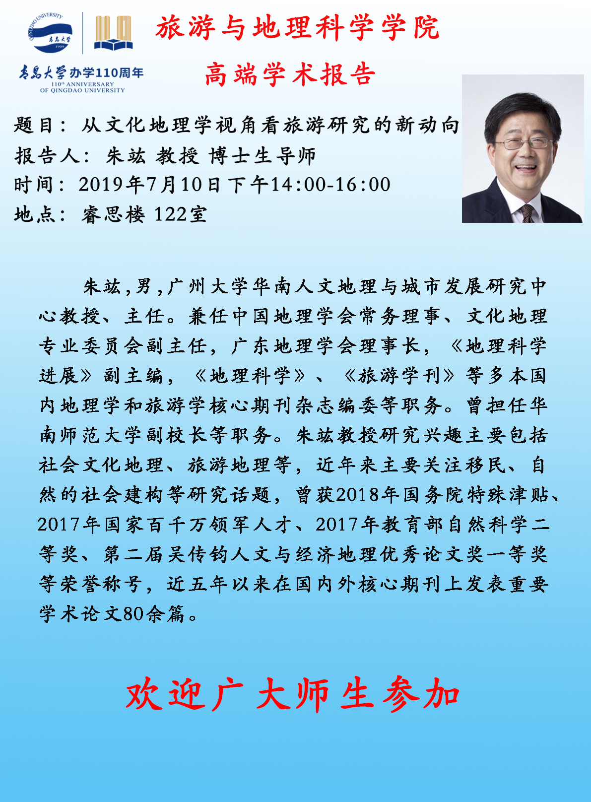 旅游与地理科学九游官网 夏季学期高端学术系列讲座