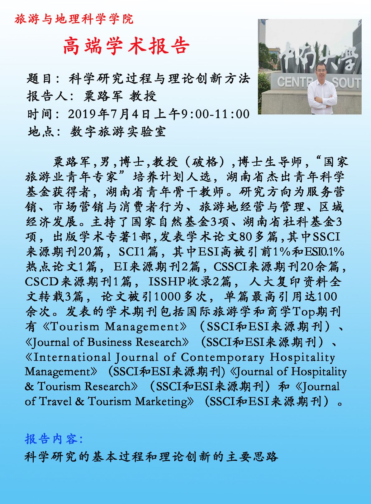 旅游与地理科学九游官网 夏季学期高端学术讲座进行时