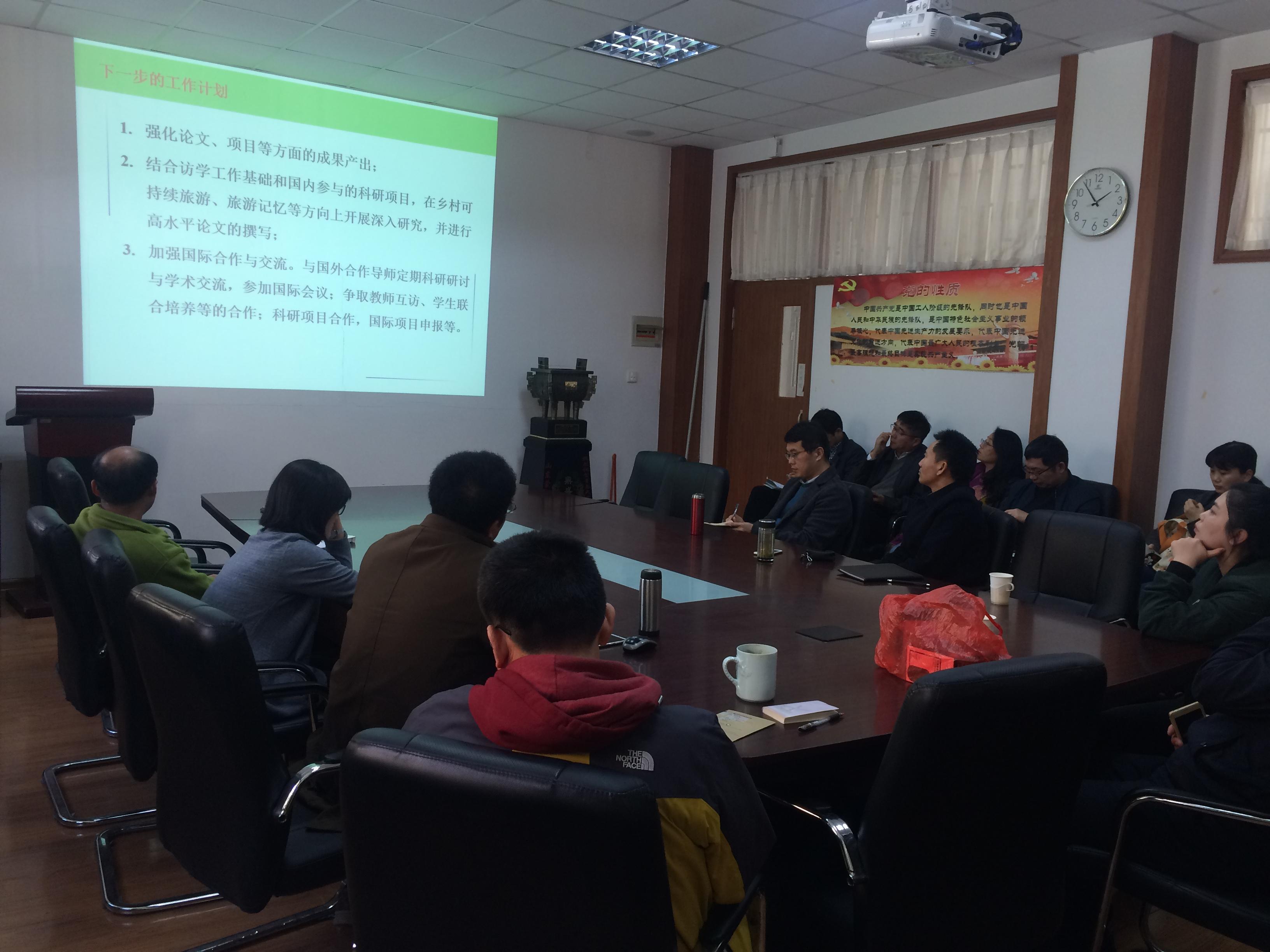 会上,赵玉宗就其在美国南佛罗里达大学的研究、学习和体验与大家进行了分享,特别是对其在美国学习与科研状况作了阐述,提到了此次访学的收获、感悟,并为今后访学的老师提出了中肯的建议。金玉实分享了在日本筑波大学的研究体会,并结合日本筑波大学的研究生课程体系对其在日本的研究作了报告。胡刚通过对美国亚利桑那大学和USDA-SWR中心及其研究流域的介绍,展示了自己的科研经历和心得体会。