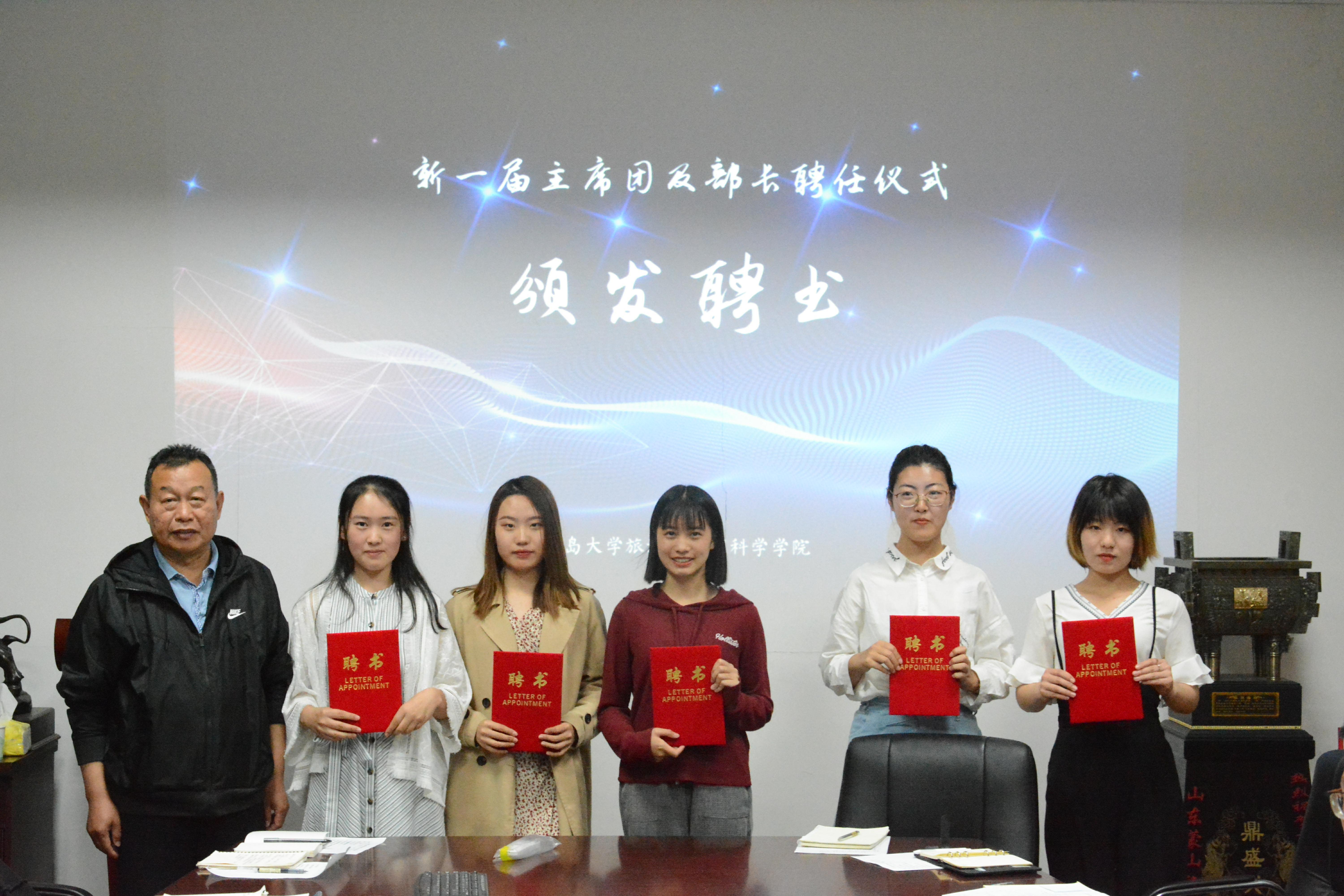 新一届学生会主席团及部长聘任仪式于青岛大学浮山校区睿思楼122室举行。旅游与地理科学九游官网