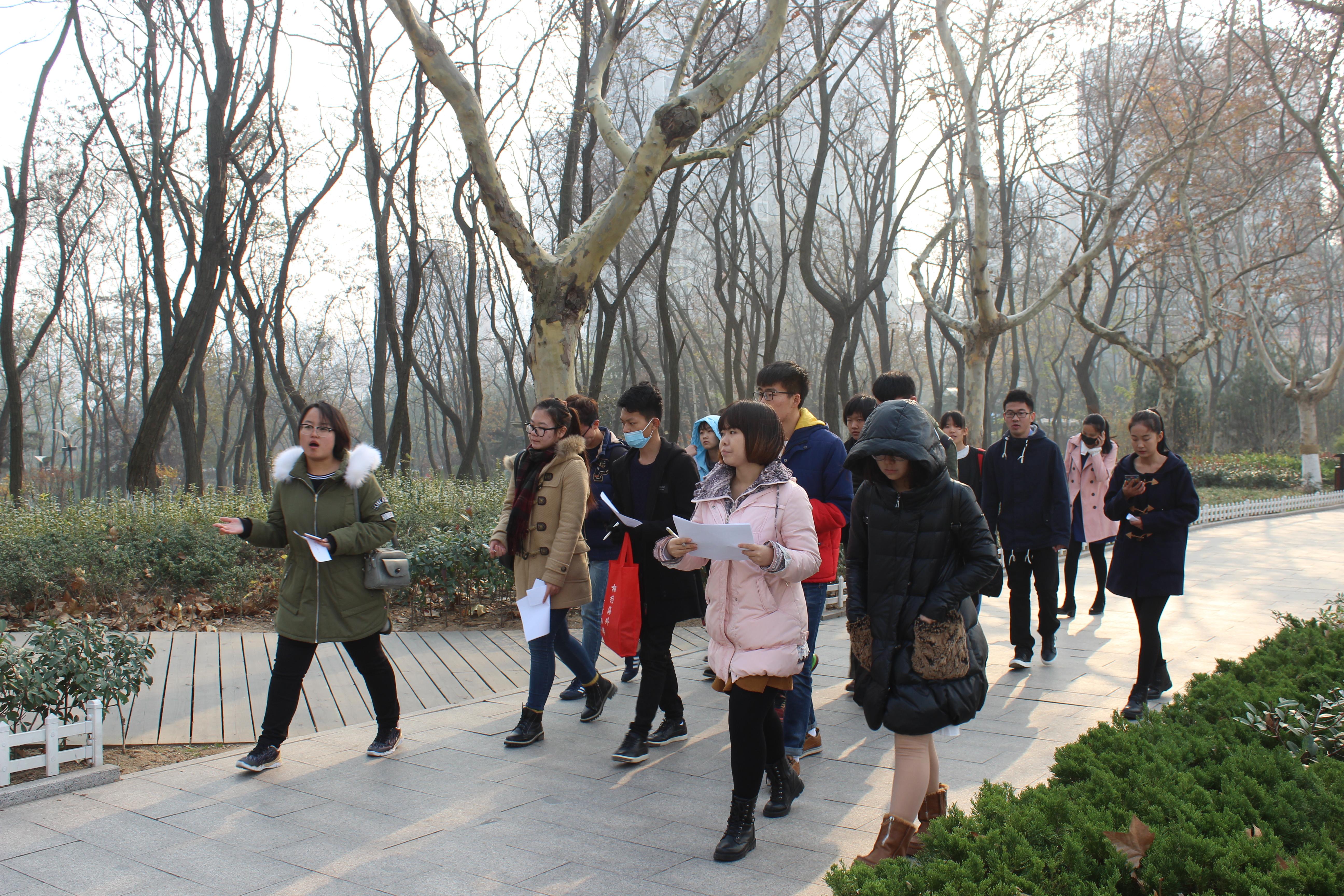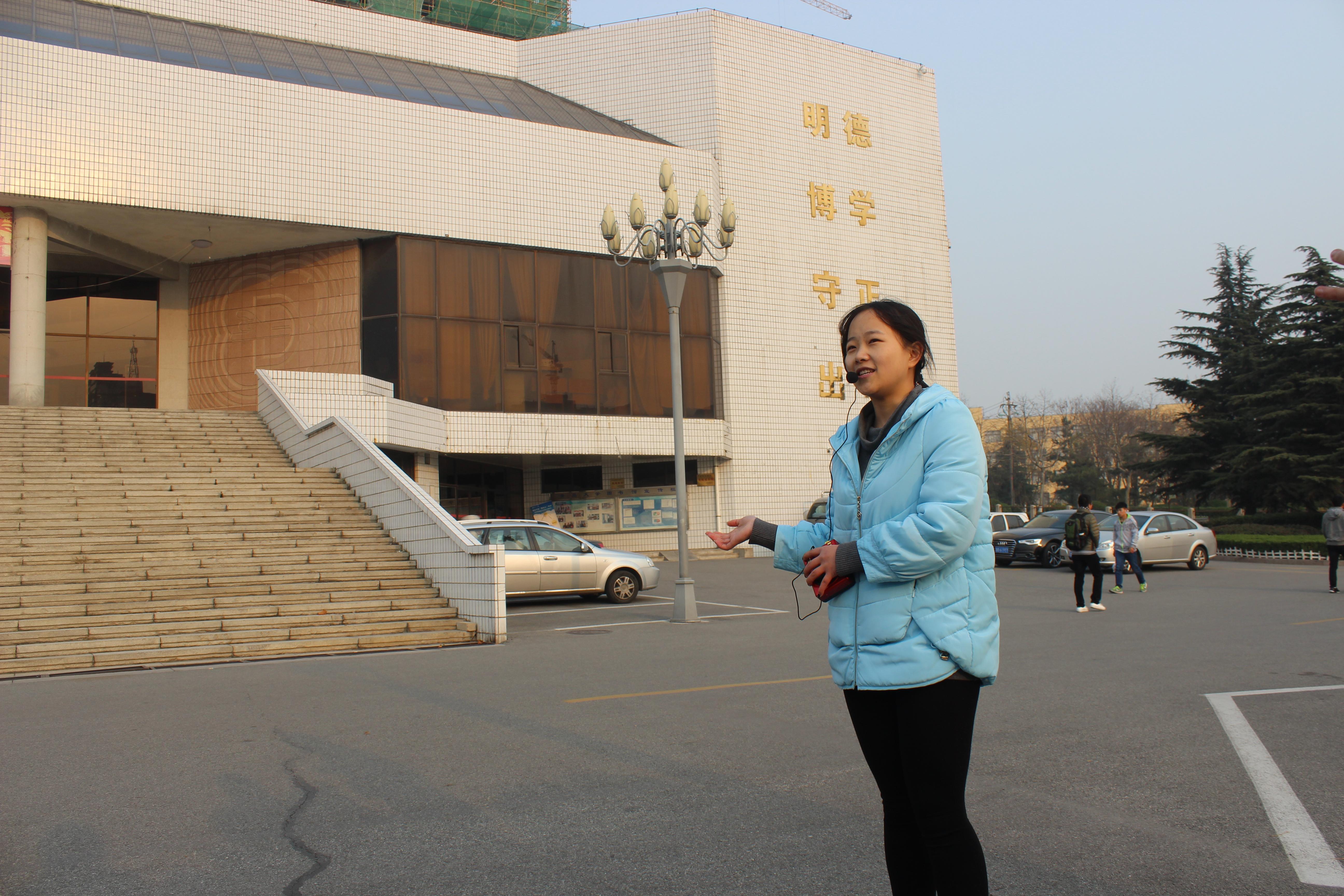 复试采用实地讲解的形式,工作人员提前向参加复试的同学发放了文化名人广场、国际学术交流中心等6个标志性建筑的讲解内容,选手们通过抽签,从中选择2个建筑进行讲解,评委全程跟随并打分和评价。