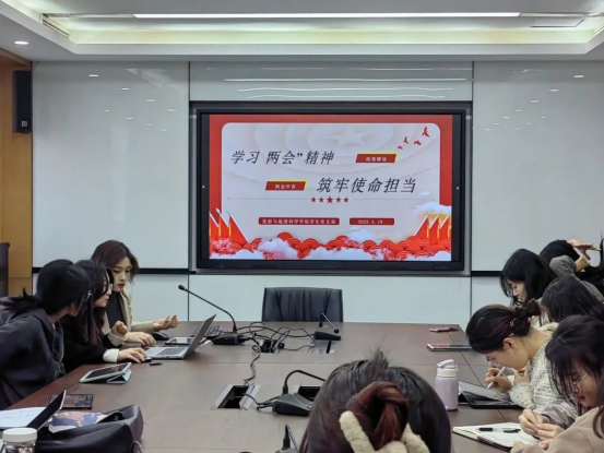学生党支部在科技研发大楼A座509室召开“学习‘两会’精神,筑牢使命担当”主题党日活动,学生党支部全体党员参与活动,活动由学生党支部副书记闵祥甜主持。