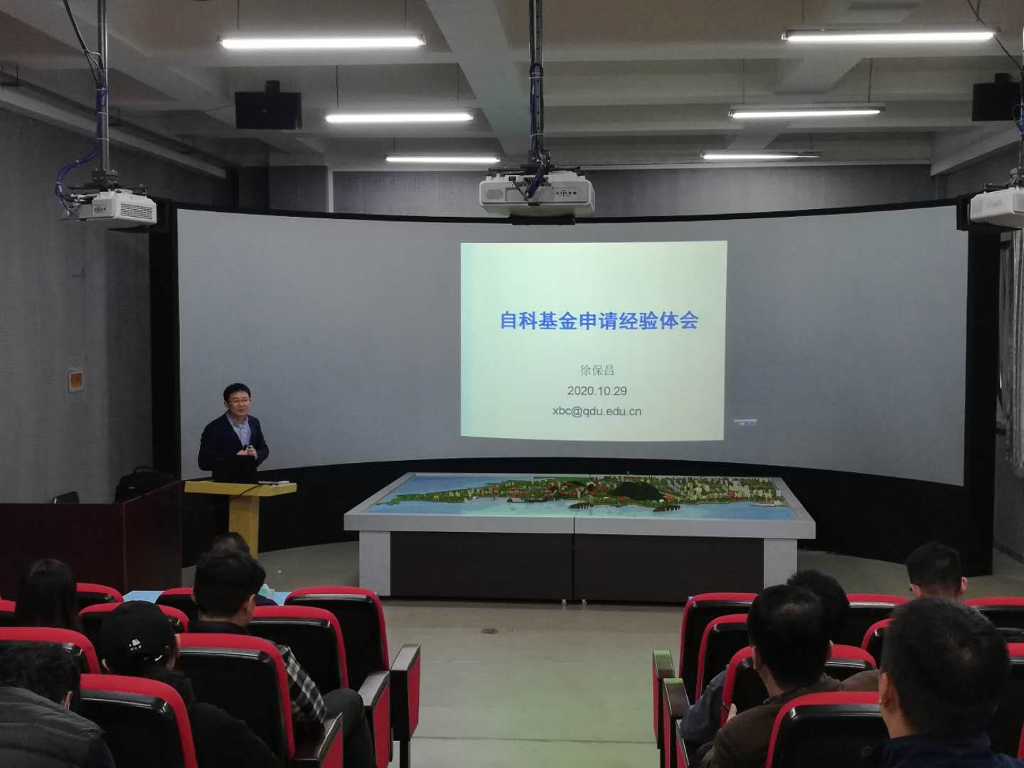 之后,徐保昌博士与在座老师们分享自己申报国家自科基金的经验和心得体会。徐博士从申请经验体会、如何写申请书两方面展开详细讲解,徐博士还分享了自己的申报感想:项目立意要新颖,只要立意新,总会有资助机会;要提前准备,申请前最好写一篇综述性论文,对研究的领域的进展真正了解,明确自己的项目定位;申请失败是常事,不必过分在意,申请人必须认真分析失败的原因,再次申请时,一定要反复仔细地研究反馈回来的评审意见,有针对性的进行补充修改。徐博士总结成功的四大要素:认真规划、正确选题、充分准备、百折不挠。