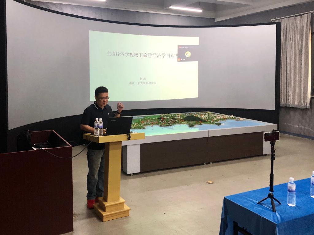 赵磊博士以“主流经济学视角下旅游经济学再审视”为题,通过自身丰富的旅游经济学研究经验,分享了对旅游经济学的思考和反思,深入浅出地介绍了中国旅游经济学研究中面临的问题和困境,并结合我国当下旅游发展的现状,指出中国旅游经济学研究最重要的是研究方法和范式,以及理论框架的构建。最后对在高质量发展背景下旅游经济学研究发展机会做出了展望。报告结束后,赵磊博士耐心的解答了在座师生提出的问题。