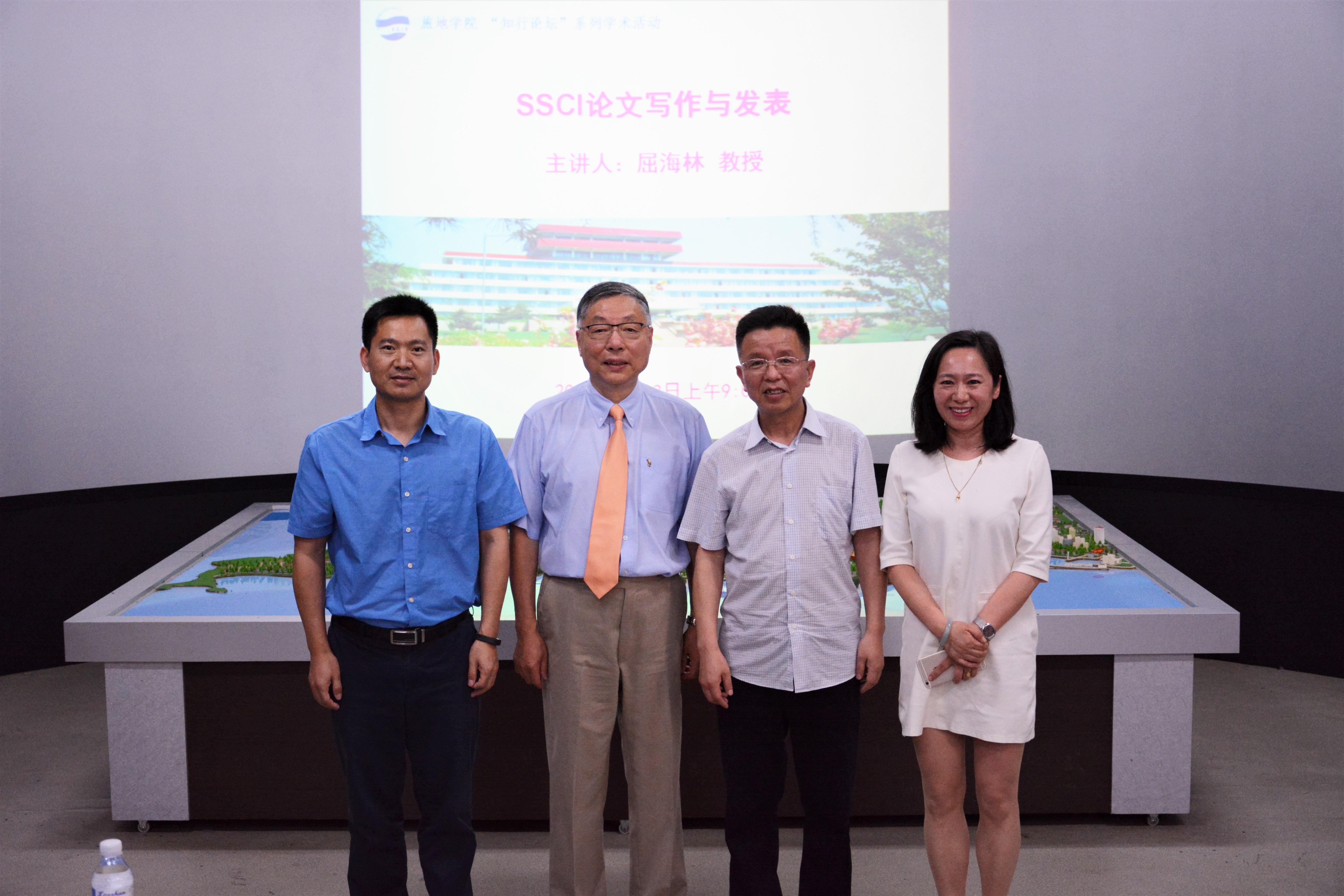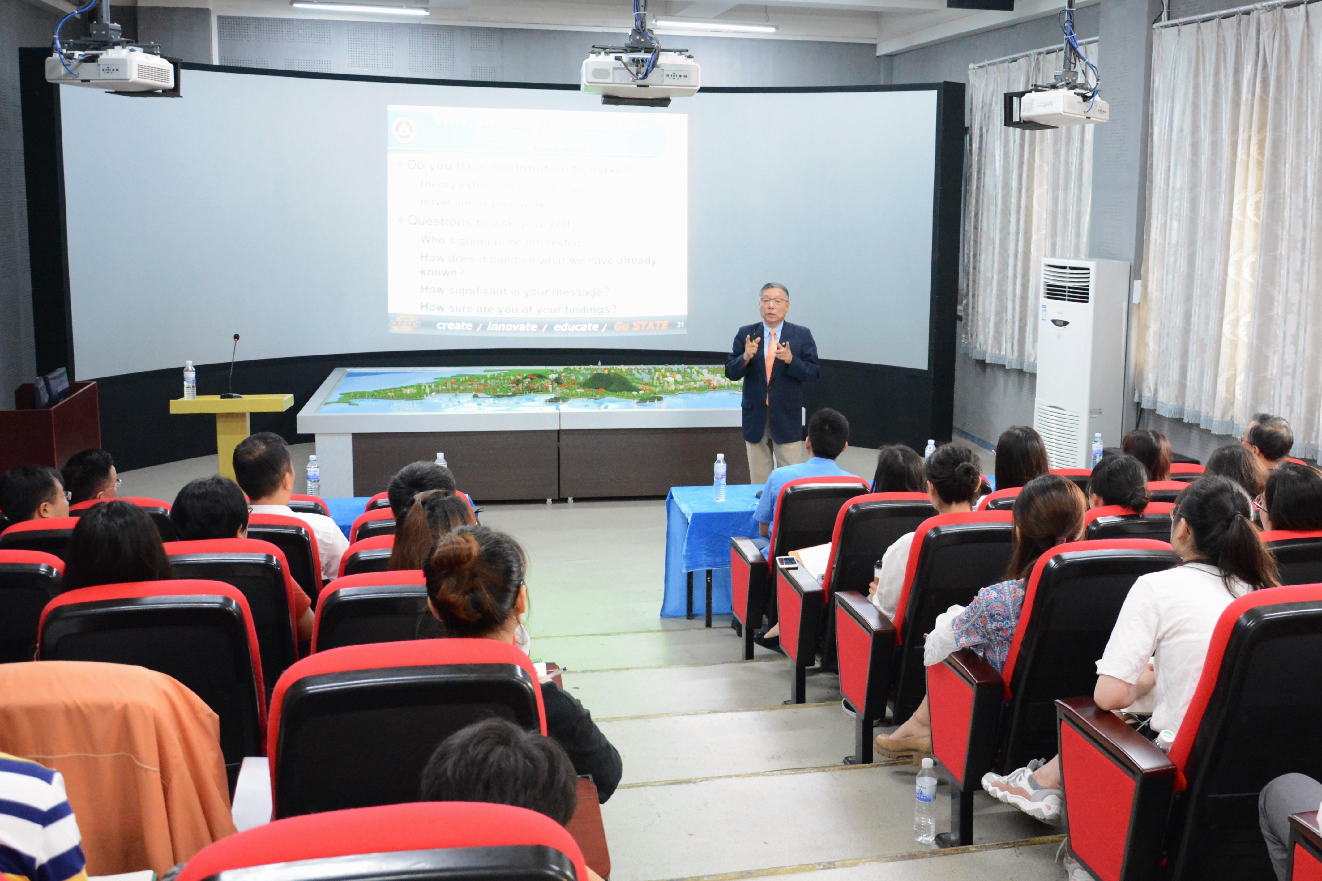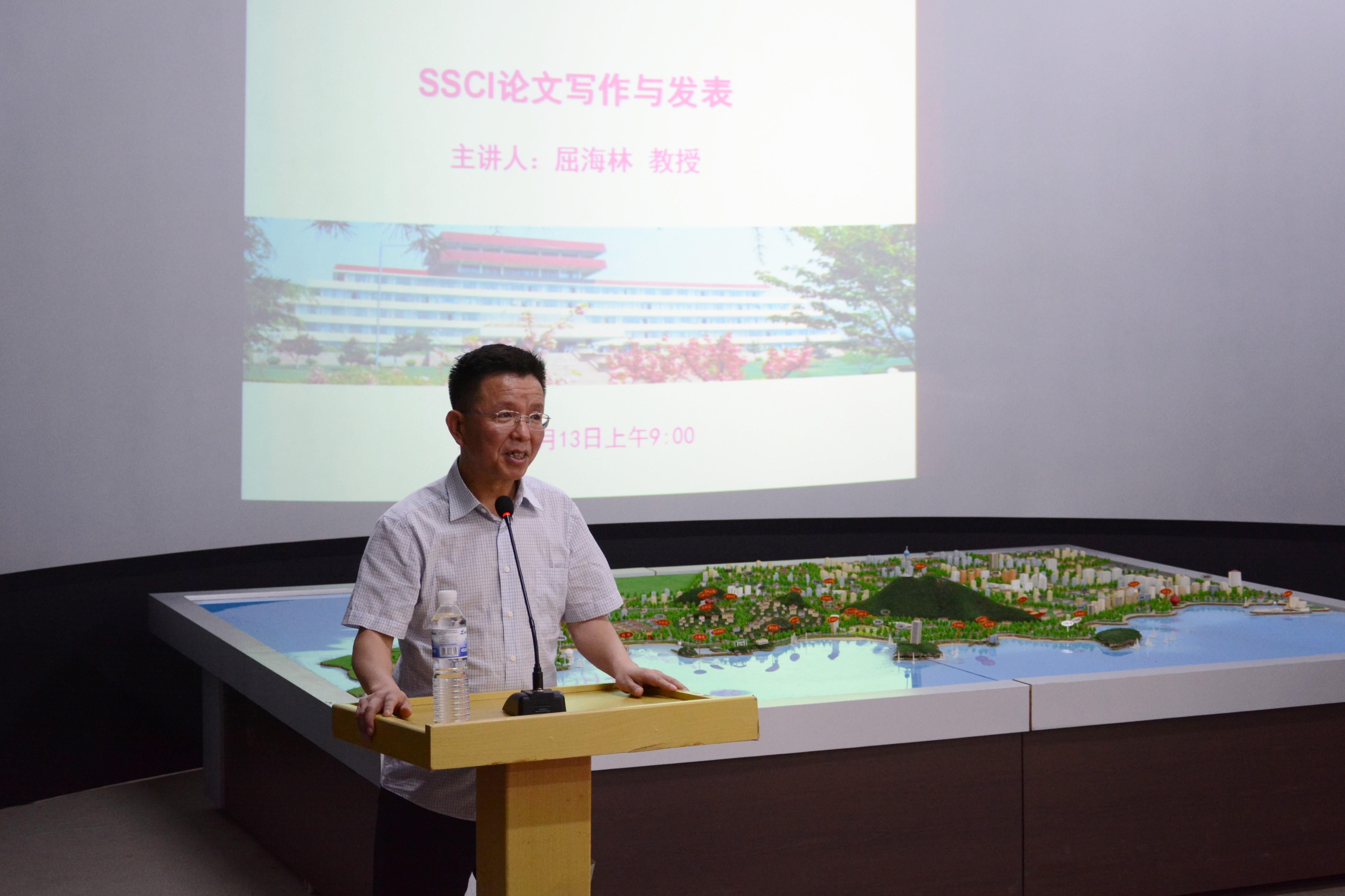 于青岛大学浮山校区静思楼2号旅游数字实验室举办“SSCI论文写作与发表”学术报告。本次学术报告特邀美国俄克拉荷马州立大学(Oklahoma State University)屈海林教授做学术交流报告,我院马波院长主持本次报告会。
