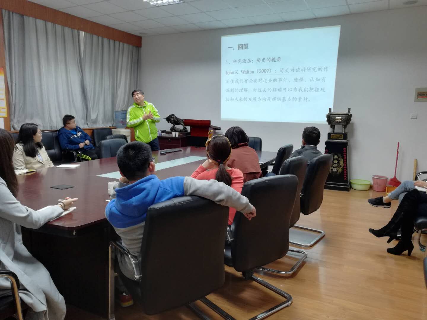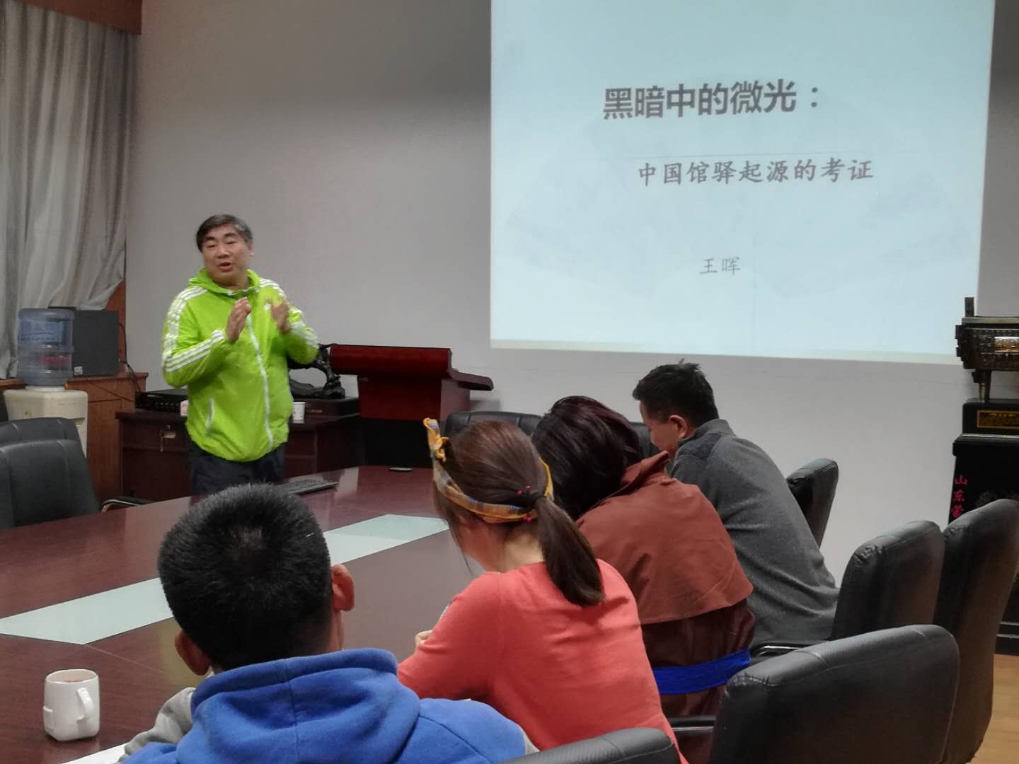 王晖老师做了题为“黑暗中的微光:中国馆驿起源的考证”的学术报告。王老师首先介绍了6种古代住宿方式,主流的官办住宿方式具有浓厚的政治色彩。然后将酒店属性概括为空间性、暂时性和服务性,并且建立了中国馆驿起源的分析框架。从政治条件、物质条件、交通条件观察,综合“文献史料+历史传说+考古资料”,最后王晖老师提出在新石器时代的中期后段就已经有用于接待的公馆存在;到大汶口文化中期,可能已经存在驿的雏形,至大汶口晚期可能已经成型,最迟于龙山文化时,驿就已经存在。