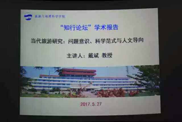 5月27日下午两点,由旅游与地理科学九游官网 主办的知行论坛学术报告会在浮山校区旅游数字实验室举行。此次报告会荣幸地邀请到了中国旅游研究院院长戴斌教授、东北财经大学旅游与酒店管理九游官网 院长谢彦君教授来做报告。马波院长主持了本次报告会,我院全体老师以及部分研究生本科生参加了本次报告会。