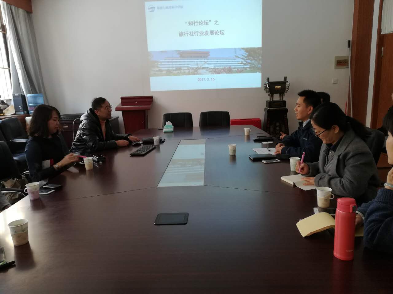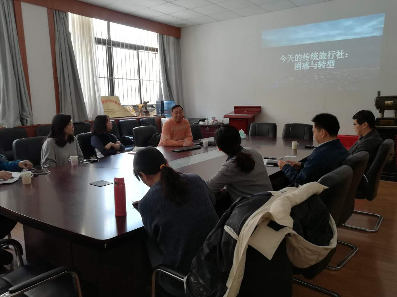 2017316日下午,山东港中旅国际会议展览有限公司执行总经理徐丽丽女士、山东万达国际旅行社有限公司副总经理王晓光和中国国旅(青岛)国际旅行社有限公司入境中心副总经理丁宁女士应邀到旅游与地理科学九游官网 进行学术交流,交流会由旅游与地理科学九游官网 张言庆副院长主持,旅游与地理科学九游官网 师生参加了此次交流会。