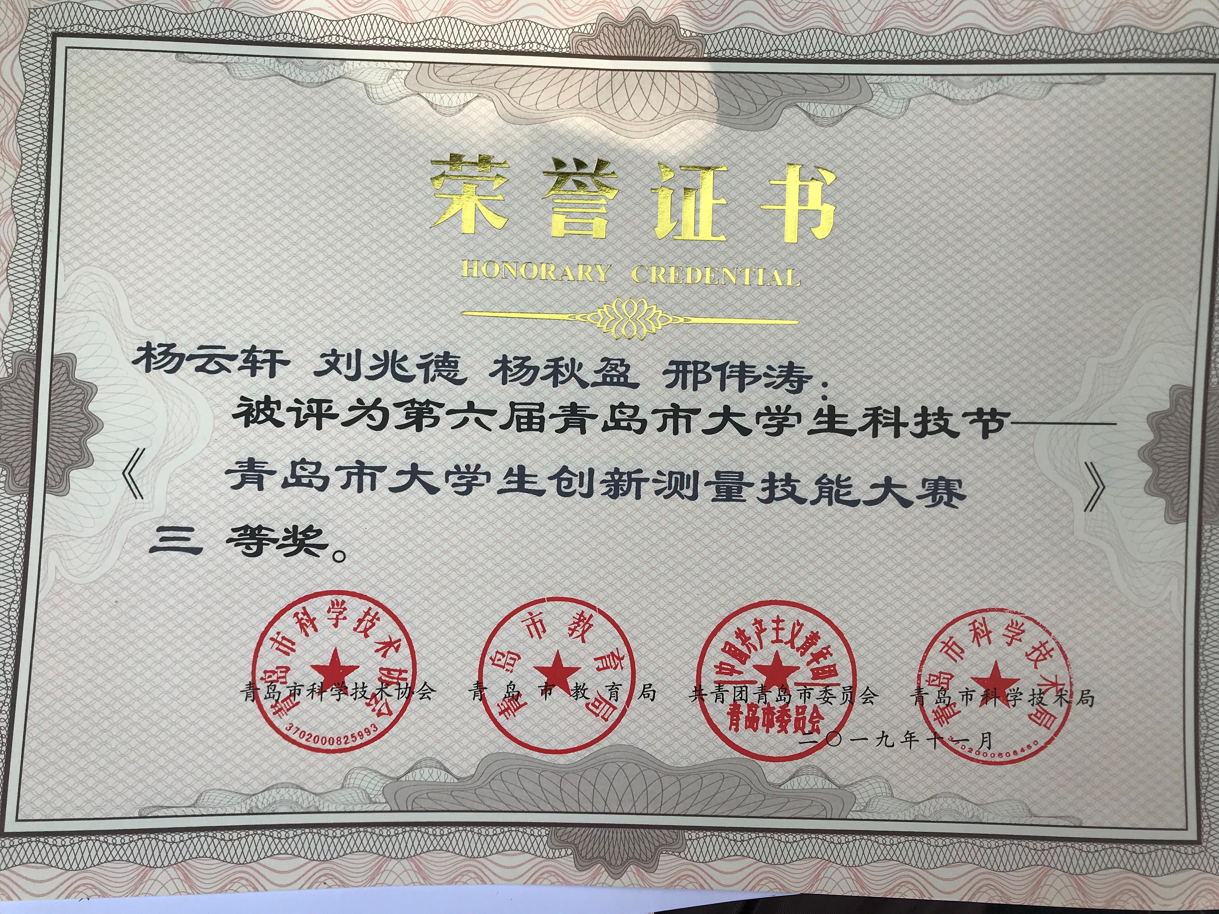 地理与城乡规划系选派学生参加“青岛市大学生创新测量技能大赛”表现出色,最终获得团队三等奖和优秀指导教师称号。