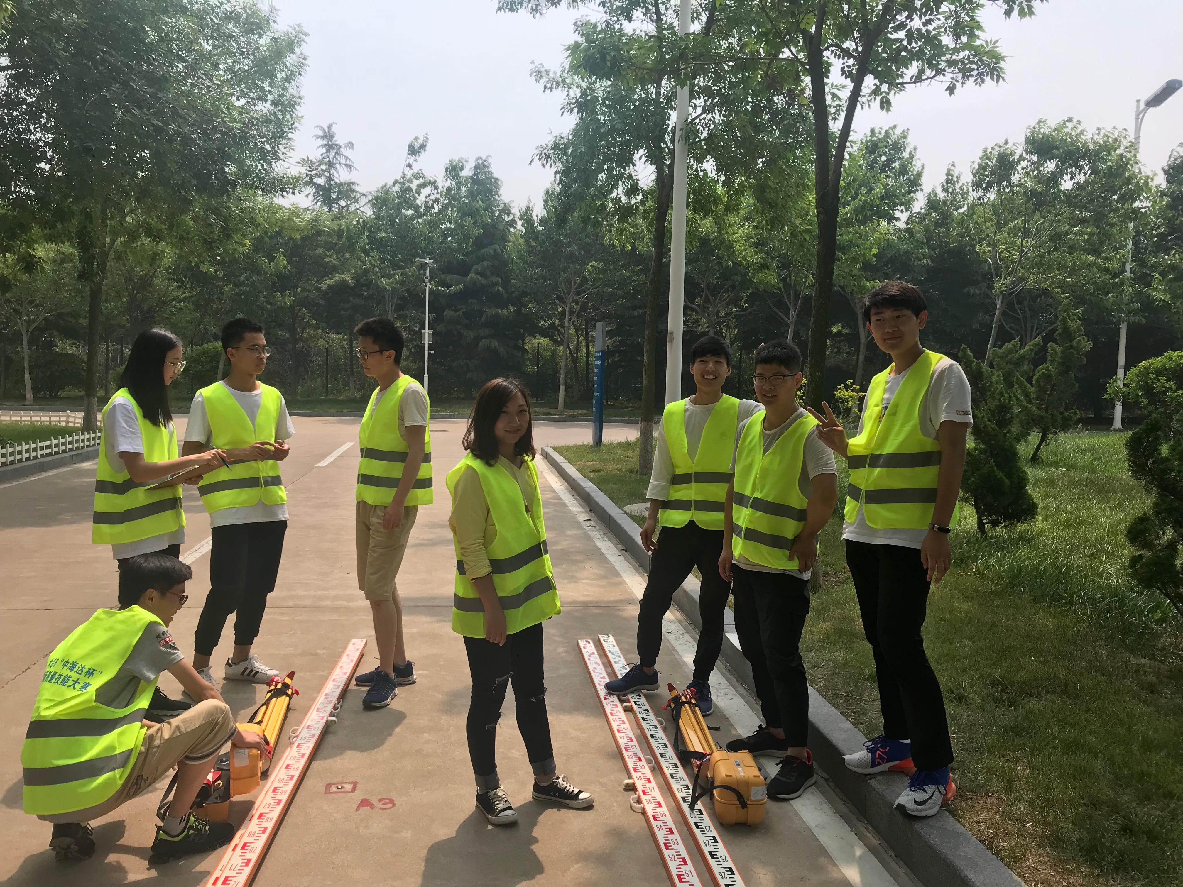 青岛市首届大学生创新测量技能大赛由青岛市科学技术协会、青岛市教育局、共青团青岛市委员会、青岛市科技局主办,由来自中国海洋大学、中国石油大学(华东)、山东科技大学、青岛大学、青岛理工大学等8所学校33支代表队的共200余名选手参加。我院地理与城乡规划系来自16级、17级的3队12名同学参加了非专业组比赛,本次非专业组设一等奖2名,二等奖3名,三等奖3名,要求四等水准测量,闭合水准路线,时间两小时,以国家专业规范严格要求。通过参赛,同学们收获了更多的测量经验与技能,对本专业的理解更加深刻坚实。