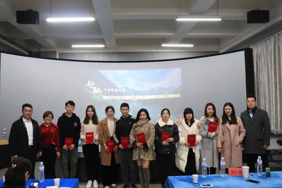 党政领导及旅游与会展管理系全体老师出席活动,报告会由旅游与会展管理系主任赵玉宗主持,2015级旅游管理专业优秀实习生代表及2016级旅游管理专业全体学生参加本次活动。