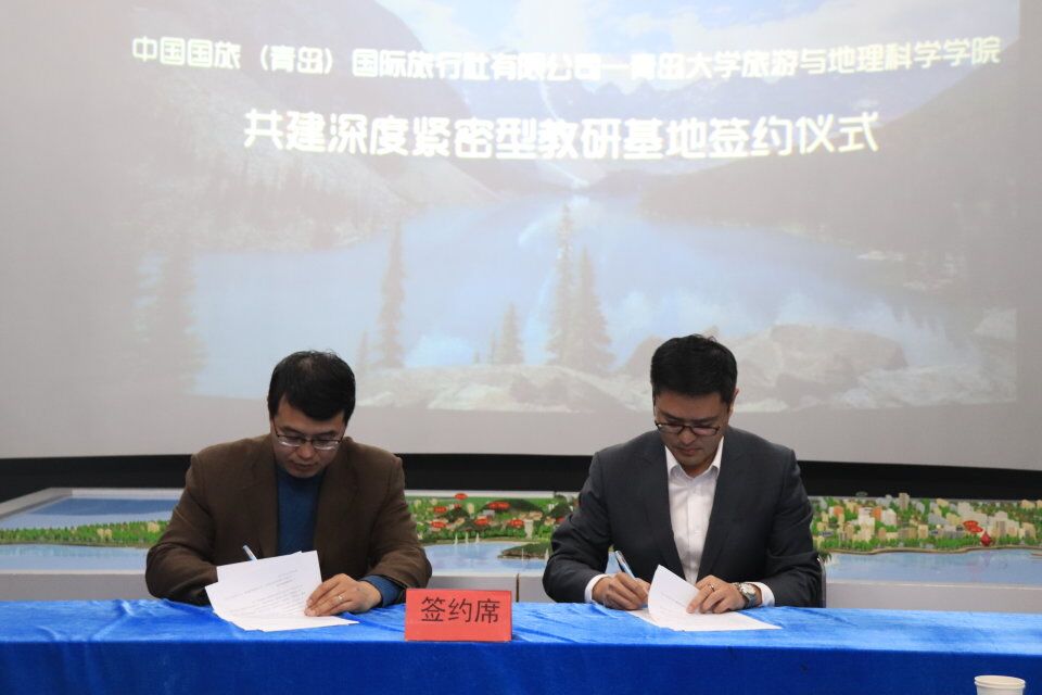 -中国国旅(青岛)国际旅行社有限公司深度紧密型教研基地签约仪式。中国国旅(青岛)国际旅行社有限公司代表、九游官网
