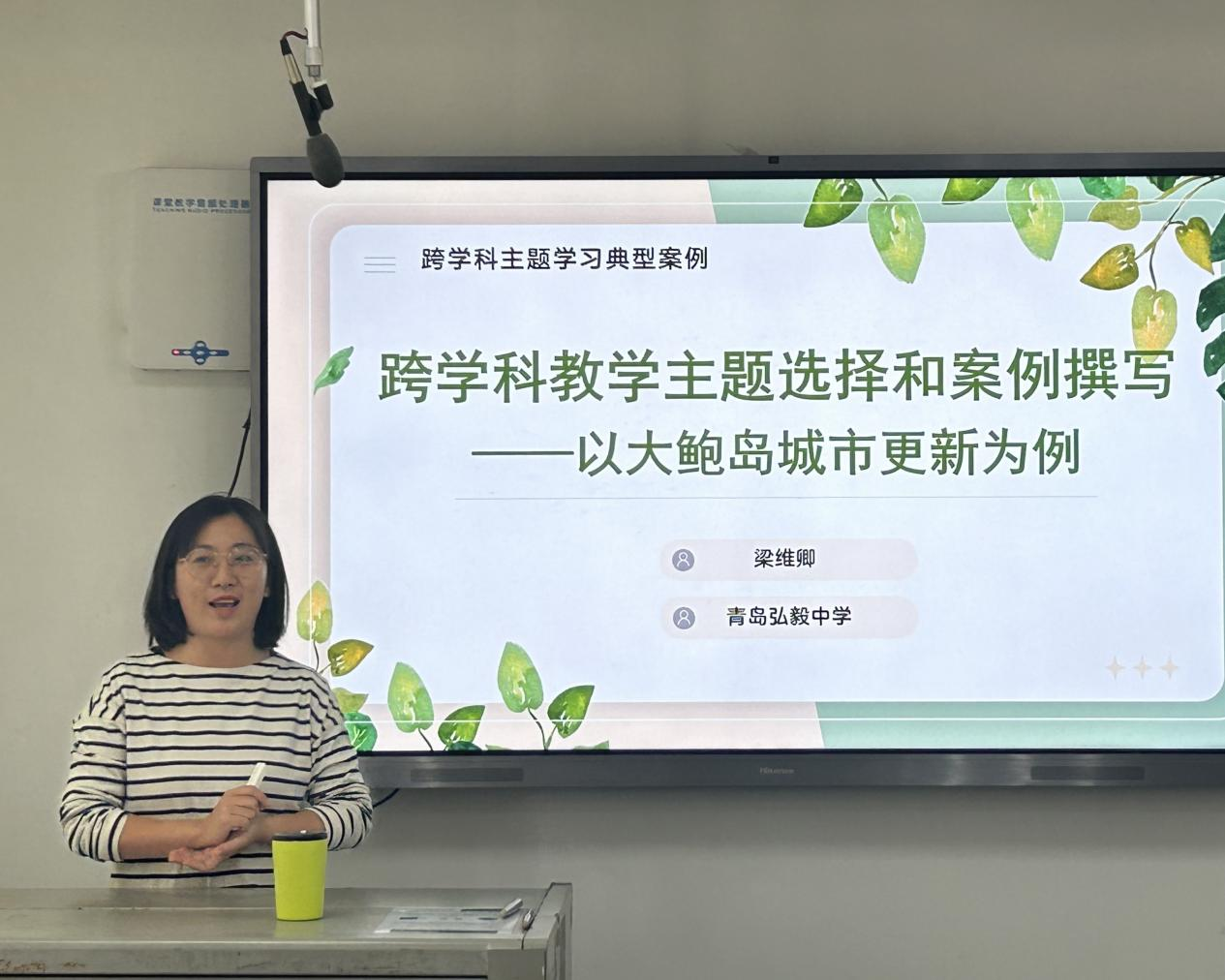 邀请青岛弘毅中学的梁维卿教师做了题为《跨学科教学主题选择和案例撰写—以大鲍岛城市更新为例》的专题讲座。
