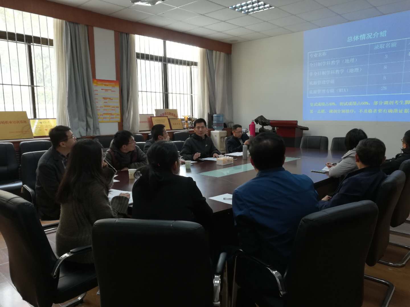 2019年3月28日,根据学校统一部署和要求,我院开展了2019年旅游管理学术硕士、旅游管理专业硕士(MTA)和学科教学(地理)共三个学科专业的研究生招生复试工作。为保证本次工作的顺利进行,九游官网 专门成立了由院长、书记、学术委员会主席等组成的研究生招生复试工作小组,成立了三个学科专业复试小组,组织开展了2019年研究生招生复试工作培训会。在前期周密部署和认真准备的基础上,经过一天紧张而有序的工作,此次研究生招生复试工作圆满结束。