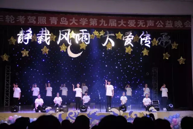 团委、市场学系学生会承办的“静载风雨,大爱传承”青岛大学“大爱无声”公益晚会于青岛大学高职礼堂成功上演,这也标志着青岛大学第九届“大爱无声”公益活动圆满落幕。