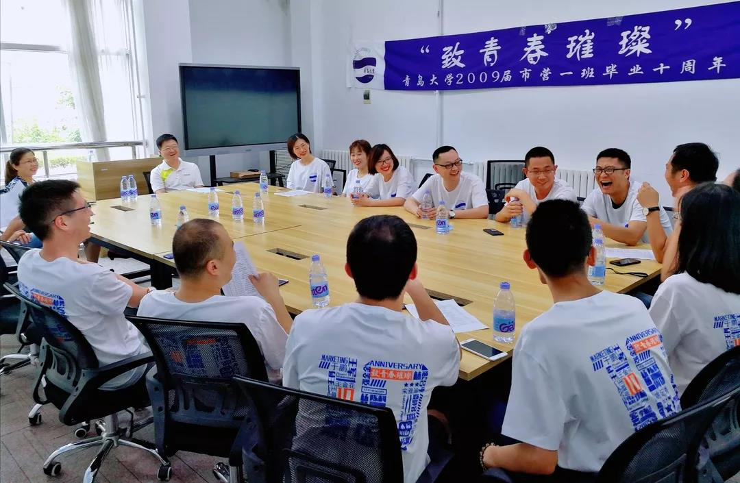 在青岛大学迎来办学110周年之际,青岛大学2009届市营一班毕业十周年座谈会于6月29日在金家岭校区椅子网教室暖心而来。市场学系原团总支书记金铧老师、辅导员房征岩老师参加了座谈会。