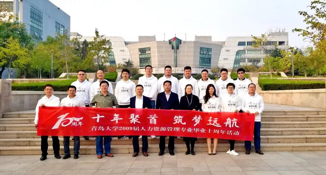 2019年10月19日,青岛大学2009届人力资源管理专业毕业十周年座谈会在金家岭校区西院办公楼310会议室举行。市场学系原党总支副书记李有平老师、市场学系教师贺广明教授、市场学系原团总支书记金铧老师、市场学系辅导员房征岩老师参加了座谈会。