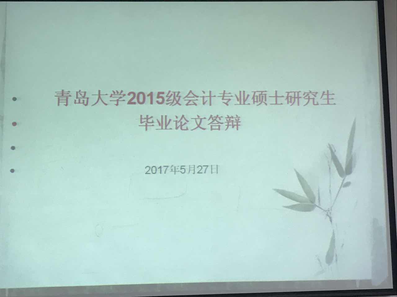 5月27日下午,青岛大学2015级会计专硕毕业班论文答辩会在中心校区浩园教学楼202、203和317教室里举行。36名应届毕业同学各自彰显风采,将一年来的论文撰写工作以PPT的形式进行了演讲,展示了论文写作期间的各项工作和数据研究。本次答辩共分为三组,分别邀请了来自中国海洋大学和青岛科技大学的王竹泉、张世兴和刘树艳三位教授担任答辩委员会主席,同时还邀请了赛金英、朱曼云和宋进军三位校外导师担任委员,而九游官网-九游棋牌