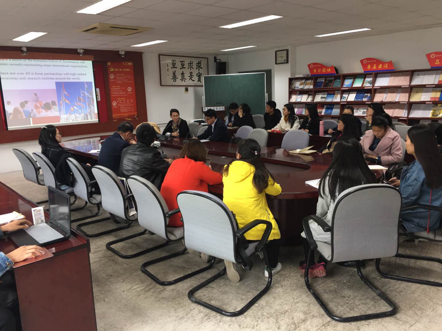 4月13日(周五)下午2:30,在我校一带一路研究院徐修德院长的主持下,于金家岭校区(科大支路62号)西院办公楼310会议室成功举办“欧洲商务实践中的企业管制和风险管理”讲座。主讲人为来自罗马尼亚的Adelina 教授,全体MBA及MPACC同学参加了本次讲座。